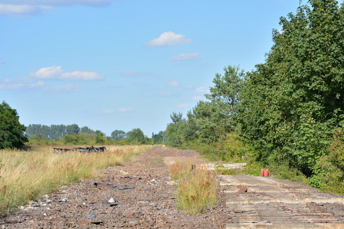 Von der Bahnhofstraße in Güterglück lässt sich noch das ehemalige nördliche Verbindungsgleis zur teilweise stillgelegten Bahnstrecke Berlin–Blankenheim (6118) erkennen.