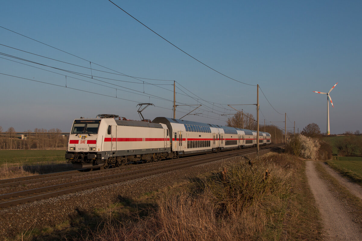 Mit der RB40 von Braunschweig nach Burg über Magdeburg hat 146 022 soeben den Bahnhof Niederndodeleben verlassen. Fotografiert am 28.03.2022. Christian Geschonneck
