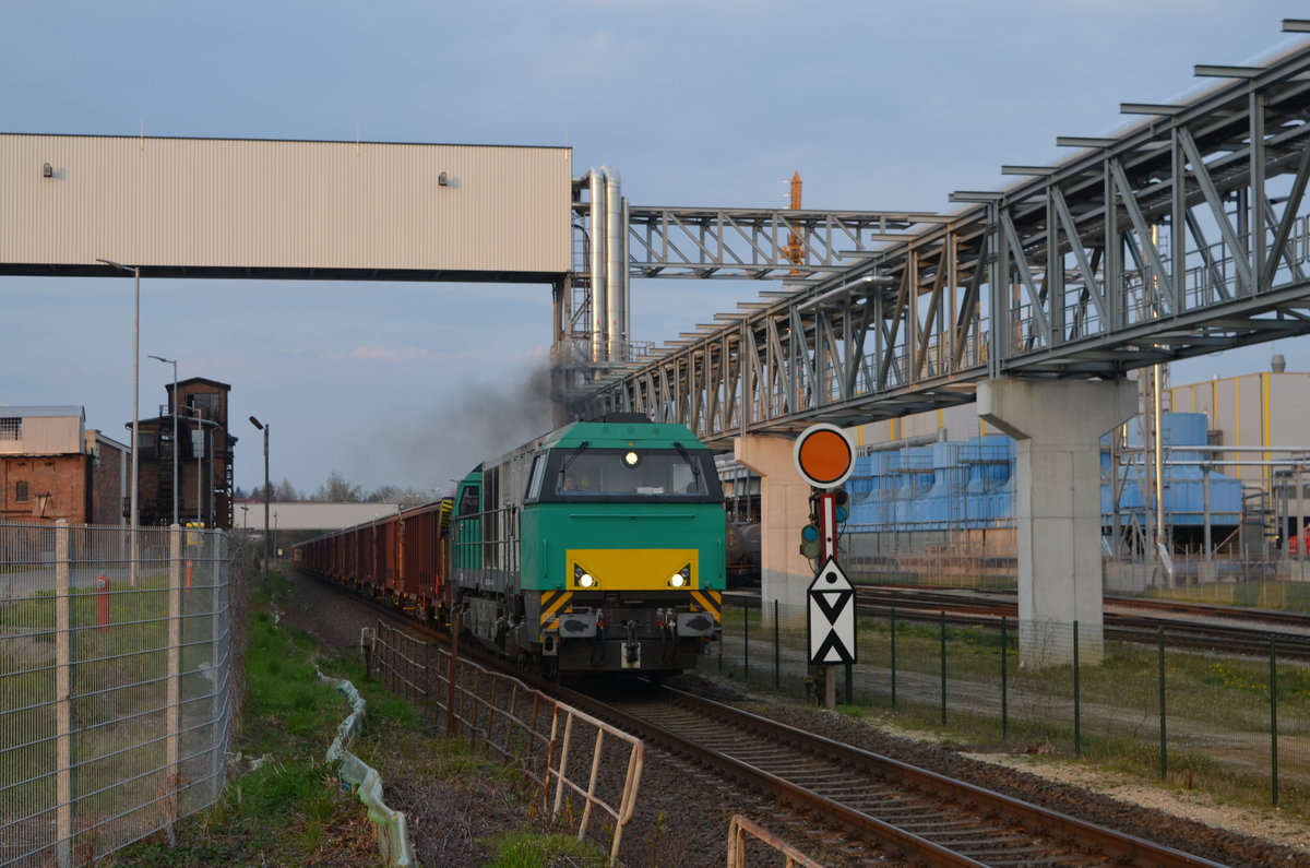 233 112 zog am 27.04.2021 ihre Übergabe nach Zeitz aus dem Bahnhof Haynsburg.