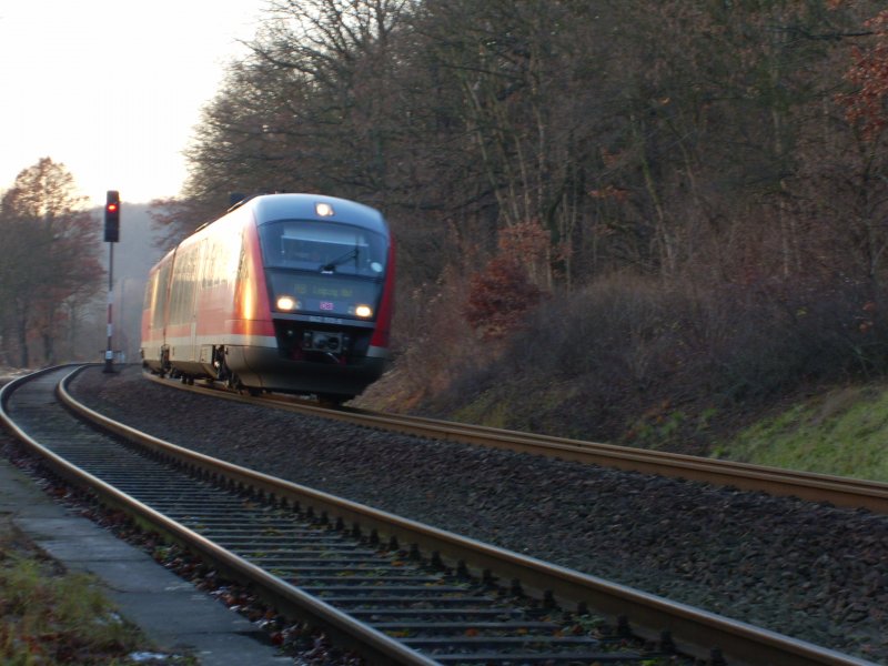 Der Desiro 642 513-6 schleicht sich als RB in den Bedarfshaltbahnhof Haynsburg um ohne Zwischenstopp nach Zeitz durchzurauschen