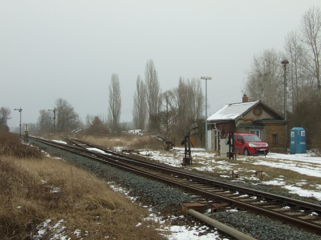 Schrankenwärterhäuschen am westlichen Ausgang des Haltepunktes Dessau-Alten. Derzeit ist es noch besetzt, wird aber demnächst durch einen ESTW-Anschluss ersetzt. Dessau, der 13.2.13