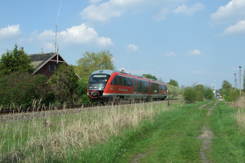 Unbekannt gebliebener VT 642 der  RB Linie 50  als RB 27928 von Dessau nach Aschersleben, hier zwischen den Haltepunkten Dessau-Alten und Dessau-Mosigkau.