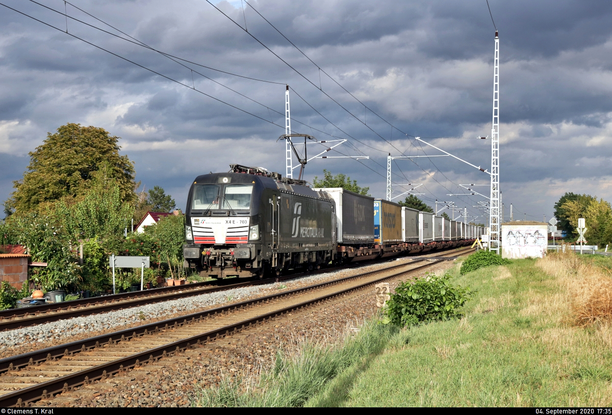KLV-Zug mit 193 703-6 (X4 E - 703 | Siemens Vectron) unterwegs am km 22,3 in Amsdorf Richtung Sangerhausen.