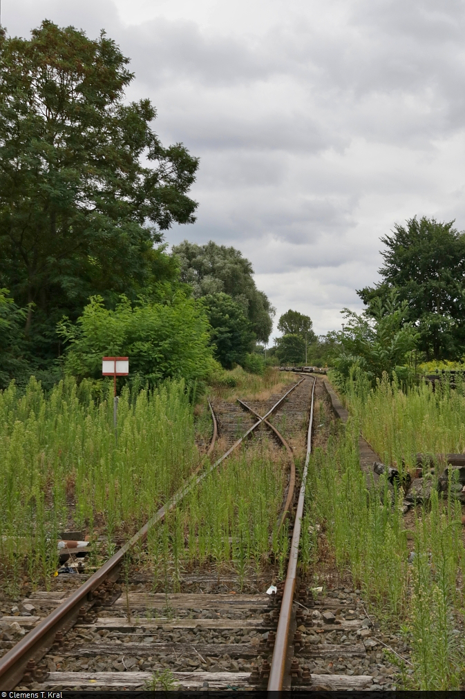 Wer sich hier nicht auskennt, wird schwer sagen können, ob in Hecklingen noch Züge fahren. Tatsächlich finden sporadisch Gütertransporte zwischen Egeln und Staßfurt statt. Die ehemalige Strecke, die heute als Bahnhofgleis fungiert, wird von der A.V.G. Ascherslebener Verkehrsgesellschaft mbH betrieben. Sie plant in Zukunft tägliche Bedienungen der Ladestraße in Egeln mit Containern. Auch der Verein Nebenbahn Staßfurt–Egeln e.V. (NbSE) bemüht sich um den Erhalt der Gleise. Ich stand auf dem Bahnübergang Staßfurter Straße. 🚩 Bahnstrecke Staßfurt–Blumenberg (KBS 317) 🕓 19.8.2021 | 17:30 Uhr