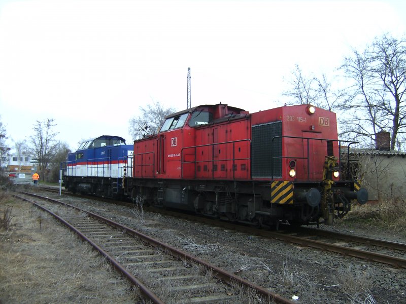 203 115 und 203 701 nach der Ankunft in Stendal am 28.01.2009