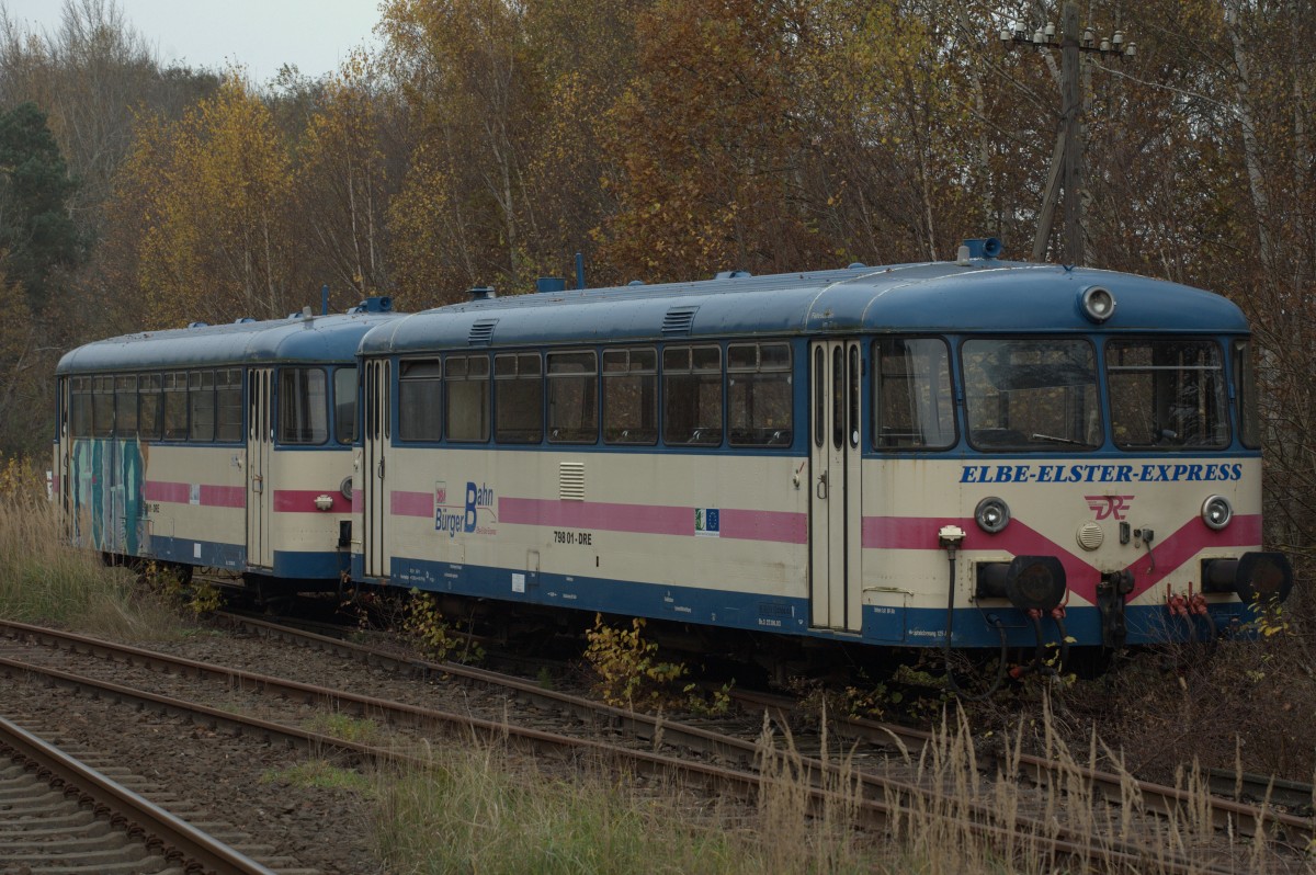 Ein Uerdinger (?) war einige Zeit als Elbe-Elster Express auf der Strecke Bad Schmiedeberg-Lutherstadt Wittenbderg unterwegs., nun abgestellt in Bad Schmiedeberg.