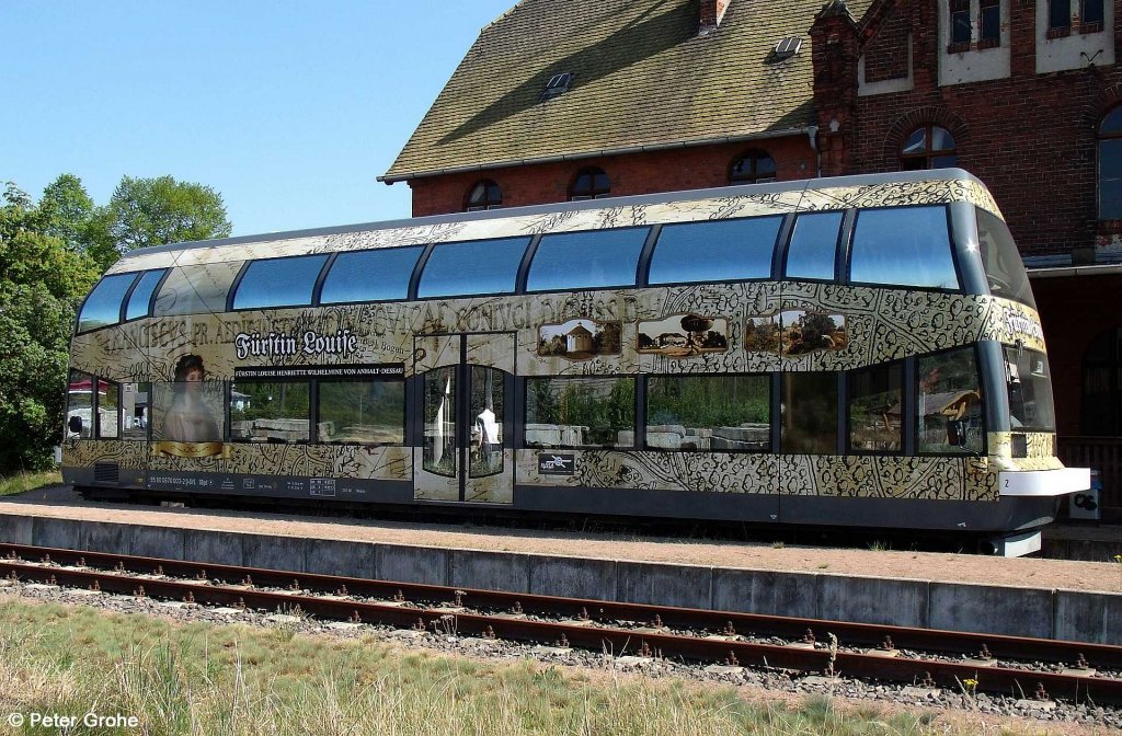 DWE 670 004 "Fürst Franz" als 81188 Wörlitz - Dessau Hbf, aufgenommen am Haltepunkt Biosphärenreservat. Aufnahmedatum: 23.07.2013