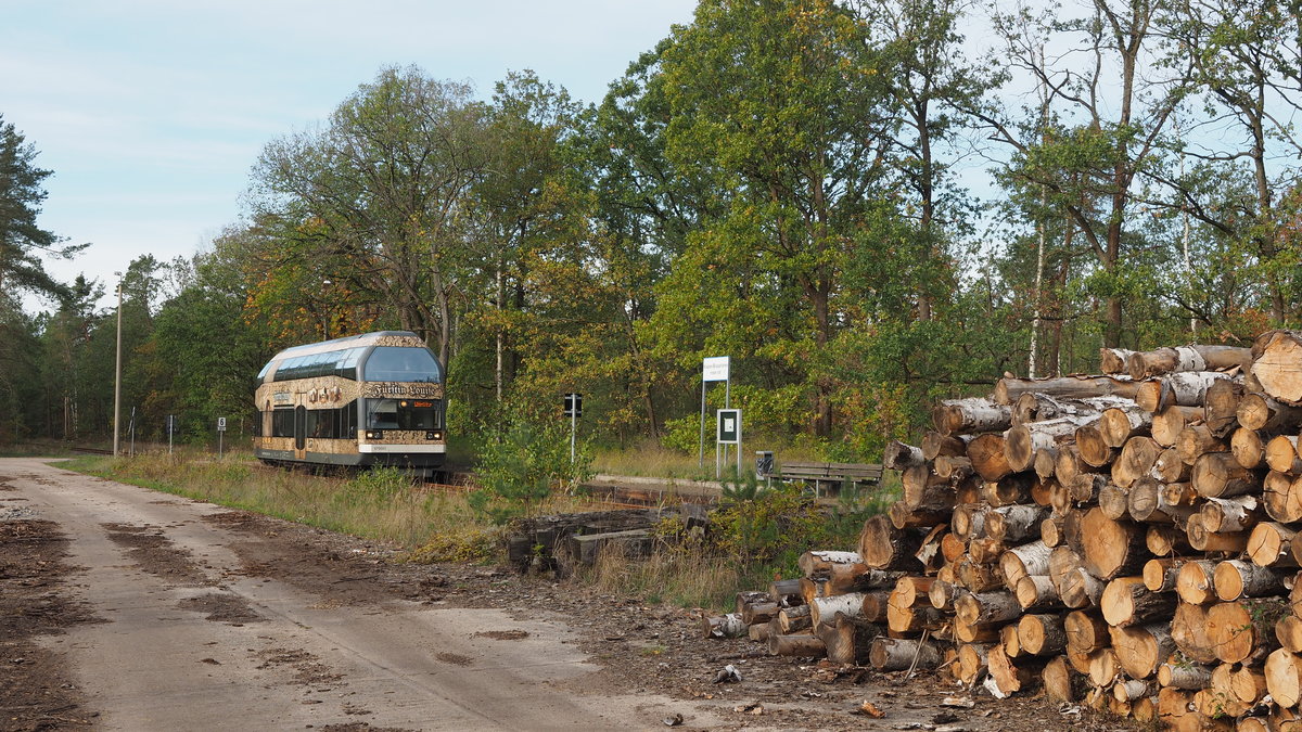 670 003 als DWE 27716 fährt im herbstlichen Reigen durch den HP "Kapen/Biosphärenreservat" Richtung Oranienbaum. Oranienbaum, der 26.10.2019