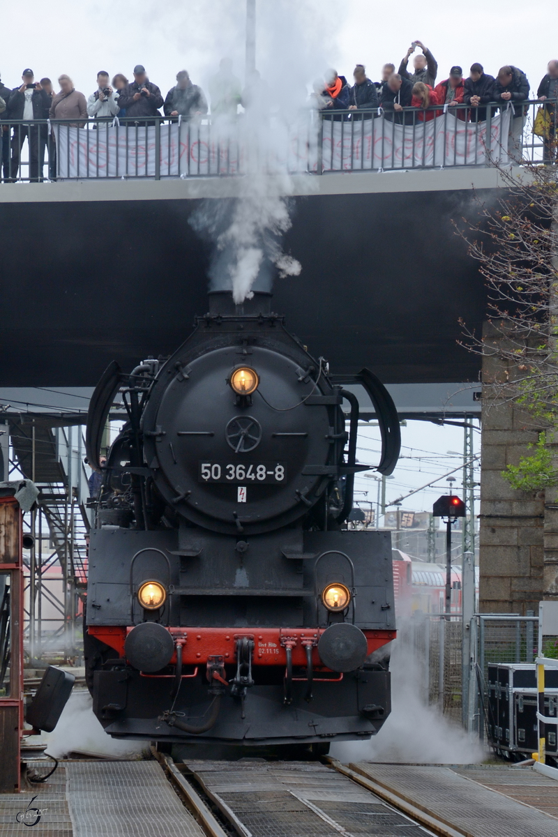 BR 50 3648-8 beim Dampfloktreffen Dresden im Bahnhof Dresden Altstadt, aufgenommen am 10.10.2023. Mit dieser Lokomotive waren an diesem Tag Führerstandsmitfahrten möglich. Günther Gabler