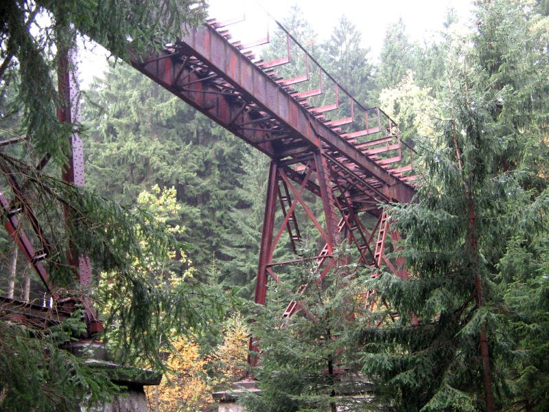 Seit 1947 fährt hier kein Zug mehr, die Fuchsbrunnenbrücke zwischen Zwönitz und Grünhain hat der Zeit getrotzt und kann heute noch bewundert werden, 03.10.07 Kai Gläßer