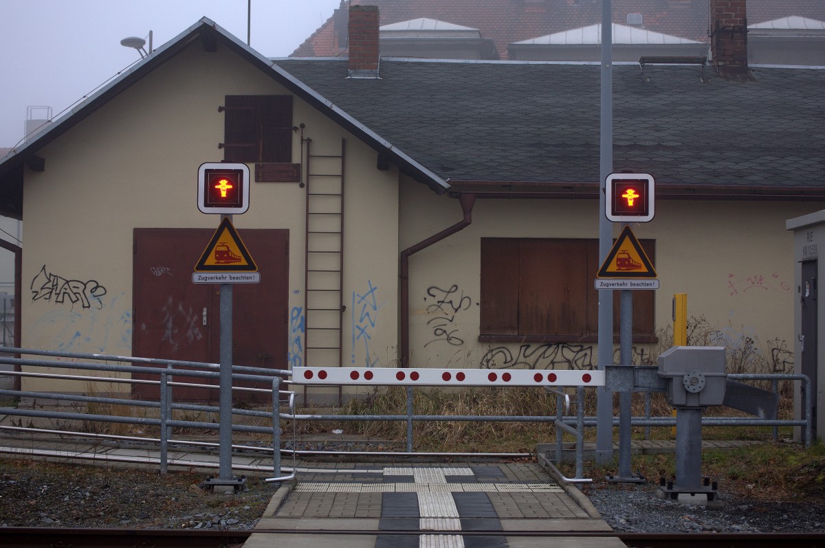 Mit dem melodischen Ertönen des Gonges war der Fotograf auf Bahnsteig 2 in Ebersbach gefangen (hemdsärmlig) und mußte 4 Minuten ausharren bei -1 Grad, es sollte nur ein Schnappschuß auf die abgestellte Maxima 40 CC werden (vergleiche ID:755193) als sich die Schranken schlossen. 19.01.2014 13:42 Uhr. Siegfried Heße