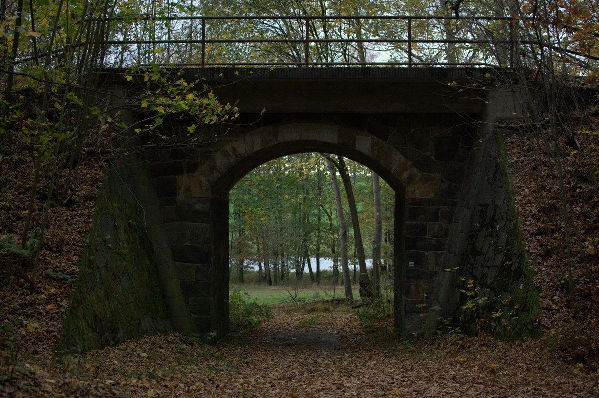 typische Brücke über einen Waldweg in Sachsen , KSB Strecke 252, Löbau Zittau, heute nicht mehr regulär in Betrieb. 27.10.2019 12:52 Uhr. Regen zieht auf. Siegfried Heße