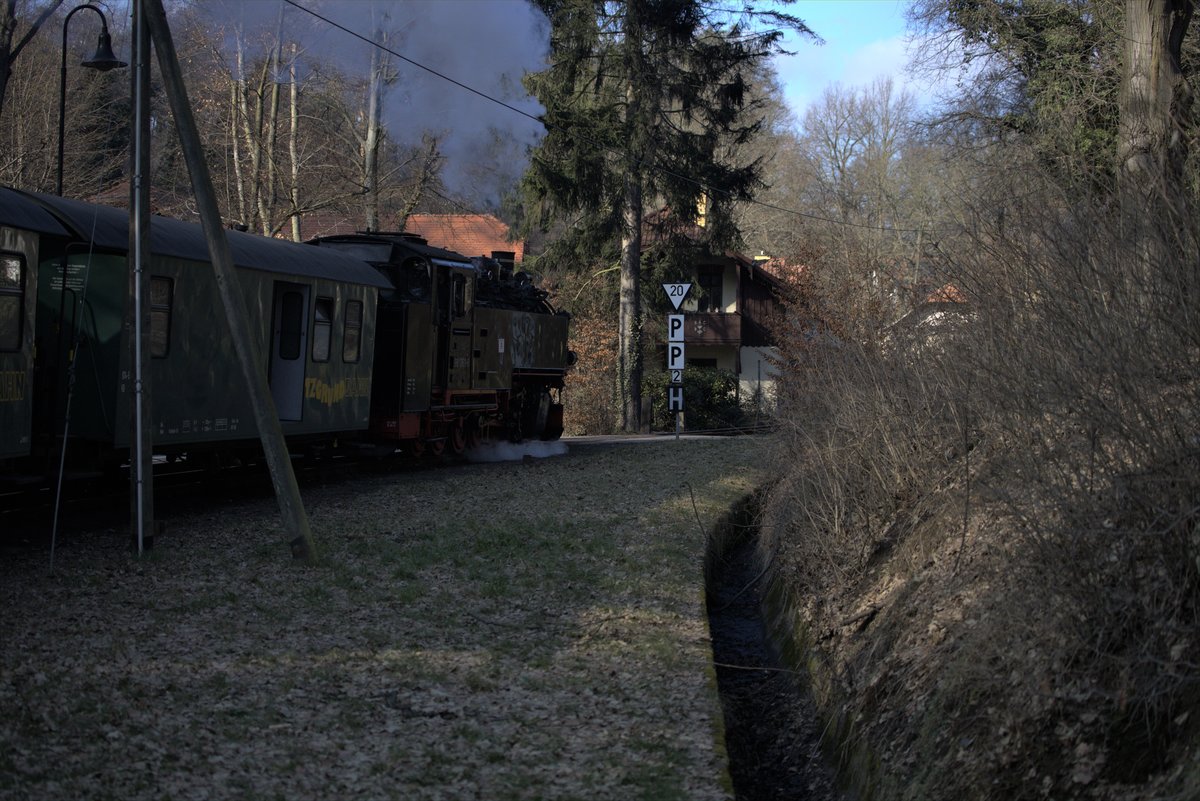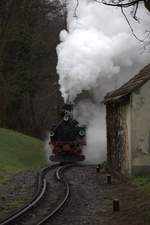 Wassernehmen in Moritzburg,hier eine typische Meyer Lok, die den Ostersonderzug von Radebeul Ost nach Radeburg beförtdert.05.04.2021 11;26 Uhr Siegfried Heße