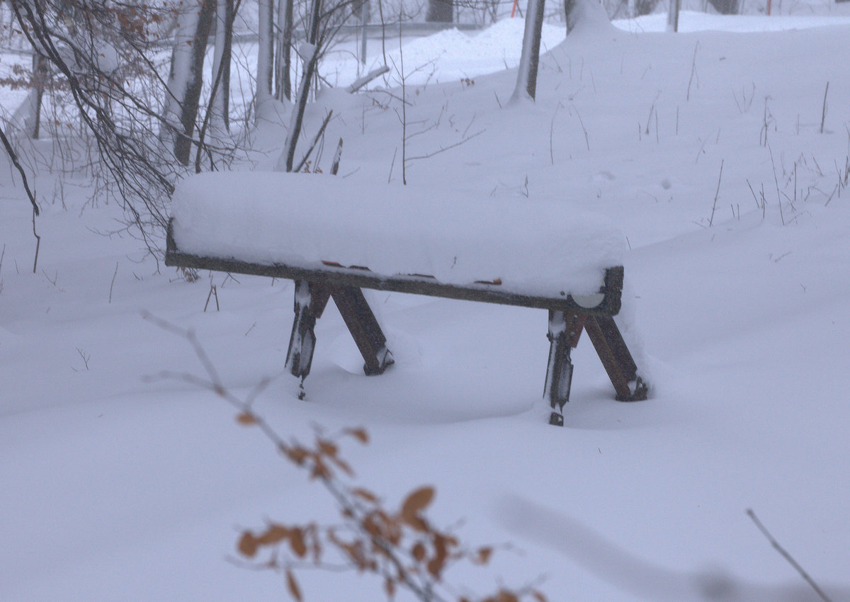 Tief im Schnee versteckt , der Prellbock in Holzhau. Leider endet die Strecke Freiberg Moldava-Most heute in Holzhau, die Skiläufer freut es, denn die Strecke wird heute als Loipe genutzt. 14.01.2017 12:15 Uhr, Nebel, Schneetreiben.