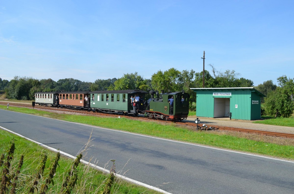 Döllnitzbahn: Sä. IK Nr. 54 in Clossen zum „130 Jahre Schmalspurbahnstrecke Oschatz – Mügeln Jubiläum“ 13.09.2015 (Standpunkt Straße)