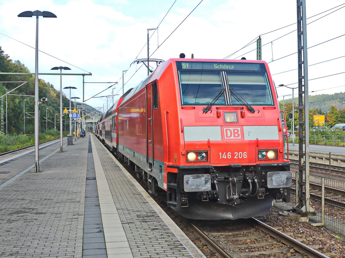 146 206 als S1 nach Schöna im Bahnhof BaD Schandau am 15. Oktober 2021.