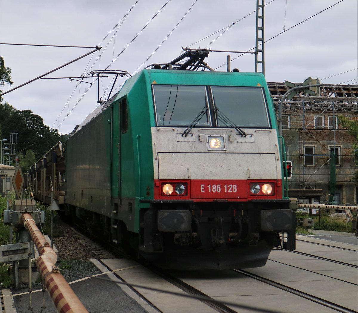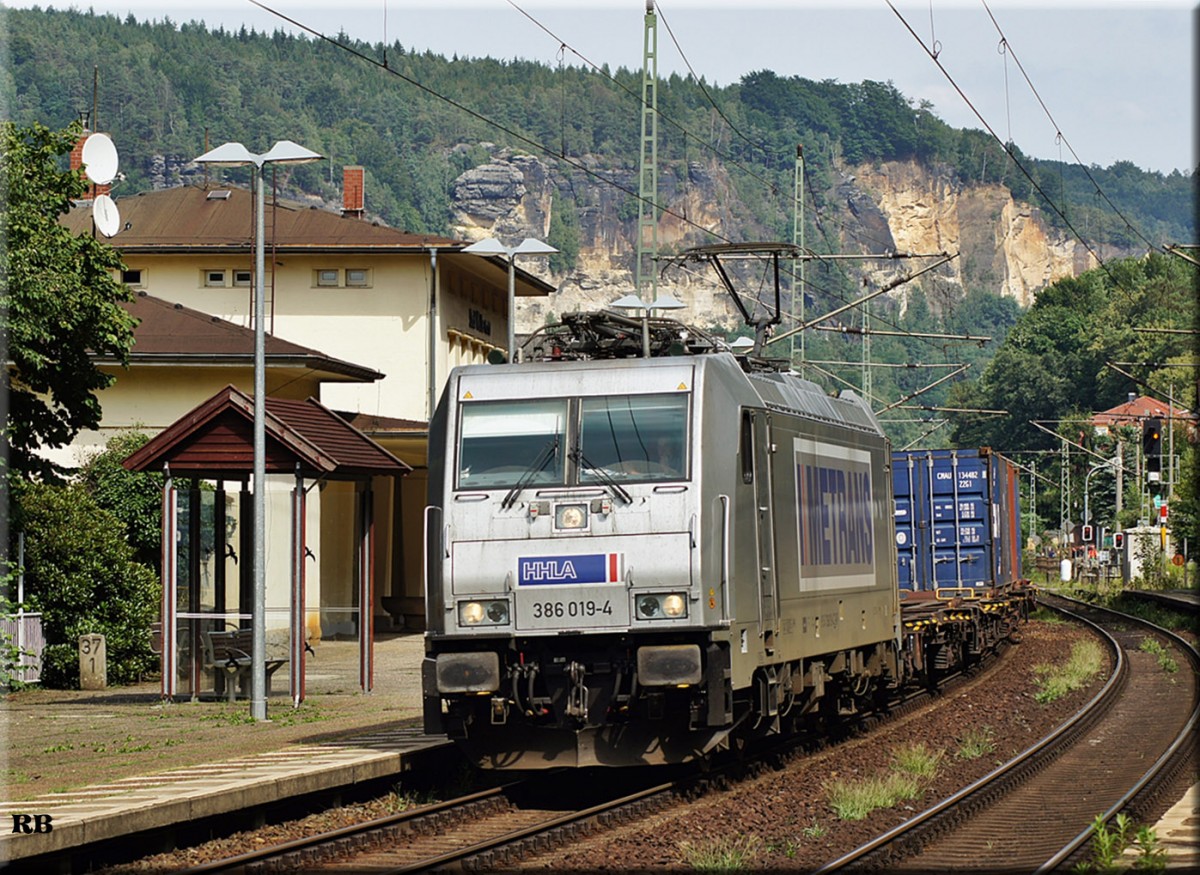 Metrans 383 414 mit einem Containerzug aus Tschechien am 09.10.2024 hier durch Stadt Wehlen Richtung Dresden und bestimmt weiter in Richtung hoher Norden. Robin Kunze
