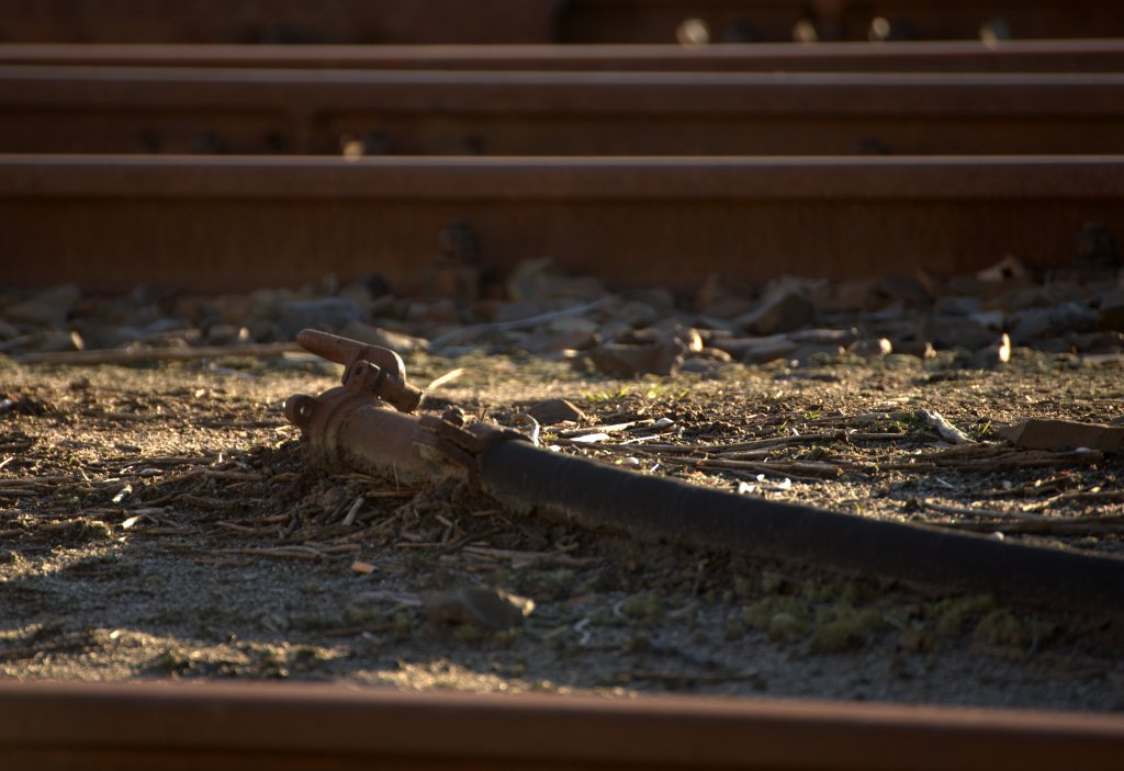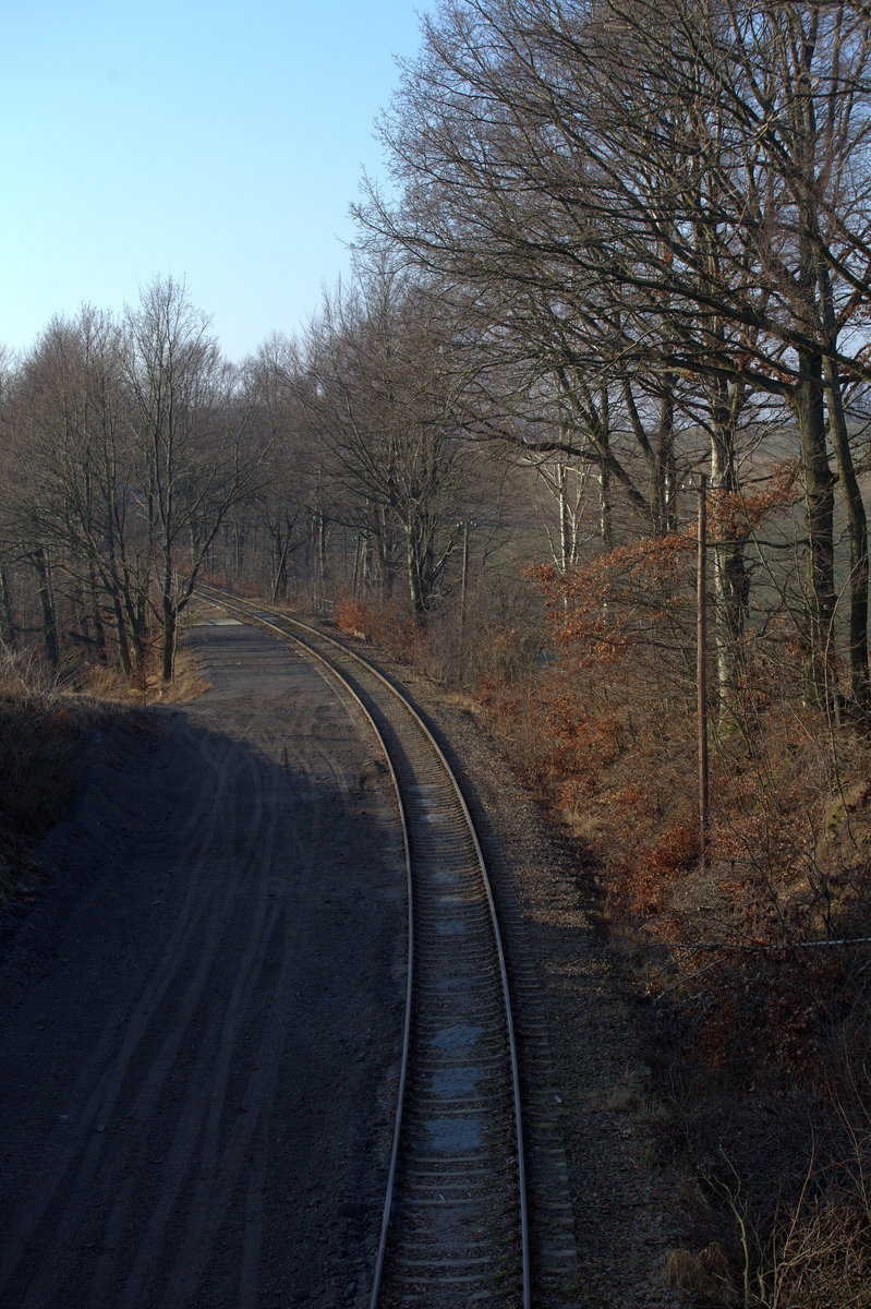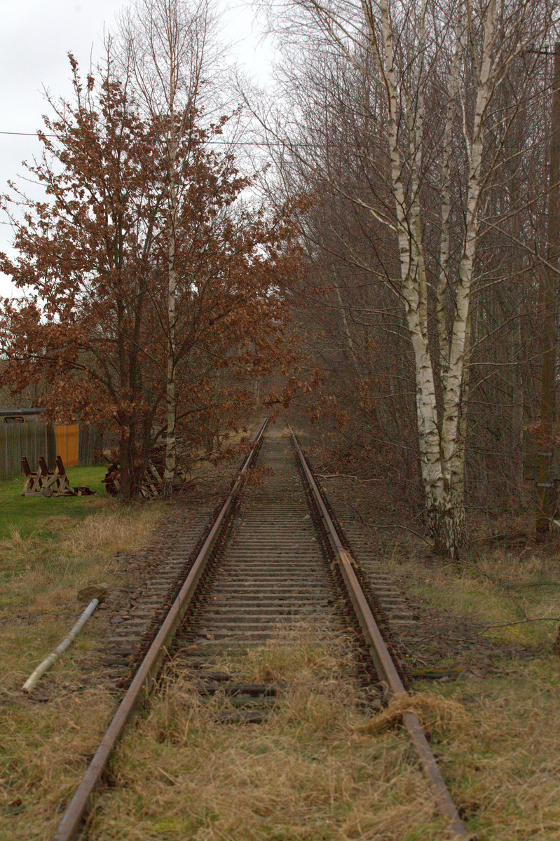 Das Ende der Telegrafenleitung an der nur noch als Anschlußgleis genutzten Strecke