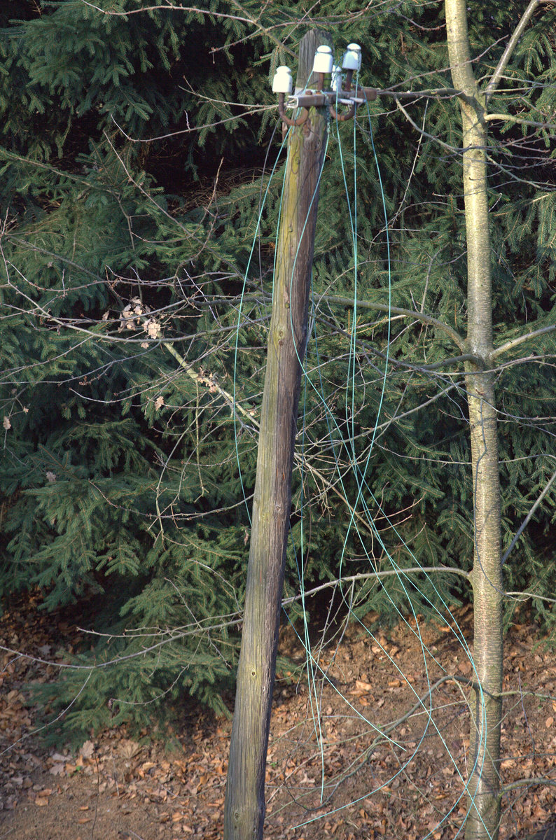 Das Ende der Telegrafenleitung an der nur noch als Anschlußgleis genutzten Strecke Wilthen-Neustadt(Sachsen)Nähe Neukirch (Lausitz) West. 14.01.2018 11.18 Uhr. Winterwanderfotowetter.
