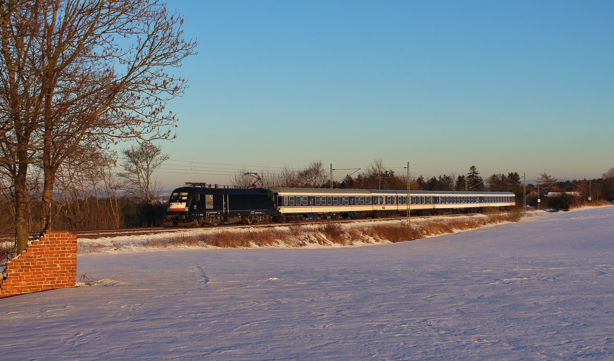DB 185 112 mit einem Umleiter aus CZ nach Halle. Der Zug, der eigentlich über das Elbtal läuft, musste aufgrund von Bauarbeiten über Chomutov Cheb Hof umgeleitet werden. Dabei konnte der Mischer bei Oberjößnitz am 06.11.2025 aufgenommen werden. Andreas Schreiber