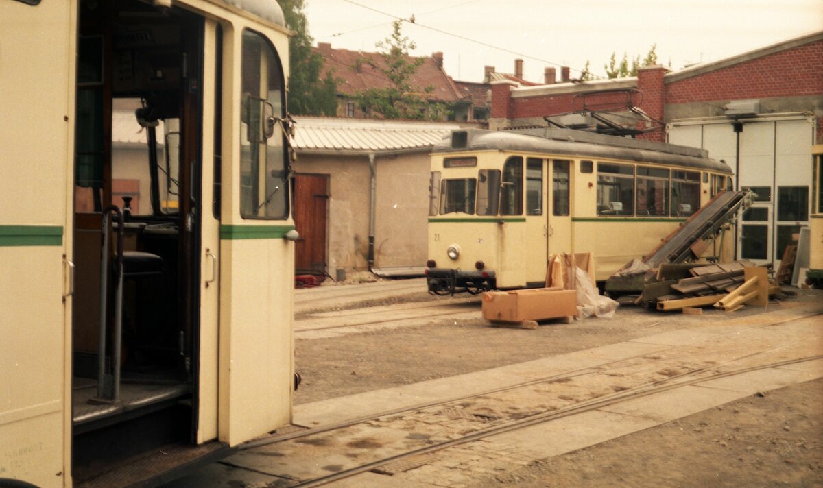 1440 408 und 1440 404 schlängeln sich mit vollster Akkupower durch das Gleisvorfeld des Leipziger Hauptbahnhofs.