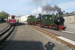 99 7243-1 bei der Ankunft aus Quedlinburg im Bahnhof Eisfelder Talmühle am 21.1.26. Hier treffen die Harzquerbahn sowie die Selkebahn aufeinander. Aus Nordhausen kommt sogar die Straßenbahn über das Netz der HSB bis zu diesem Bahnhof mit ihren Zweikraftfahrzeugen des Typs Combino Duo.