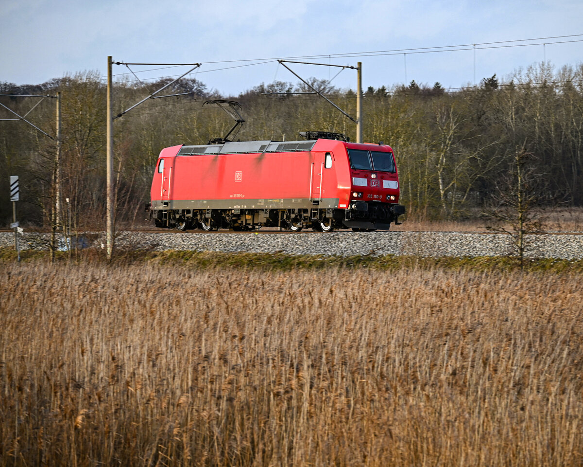 D-DB 185 150-0 fuhr am 17.12.23 LZ in Richtung des Lübeck-Travemünder-Skandinavienkai (ALSK). Hier im Gleisbogen auf höhe der Gedenkstätte von Alt Lübeck/ Liubice. Jan-Phillip Ringer