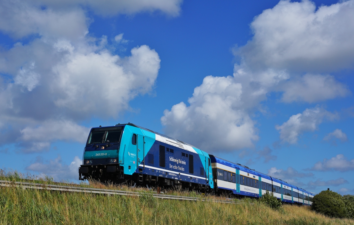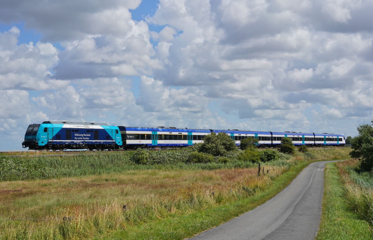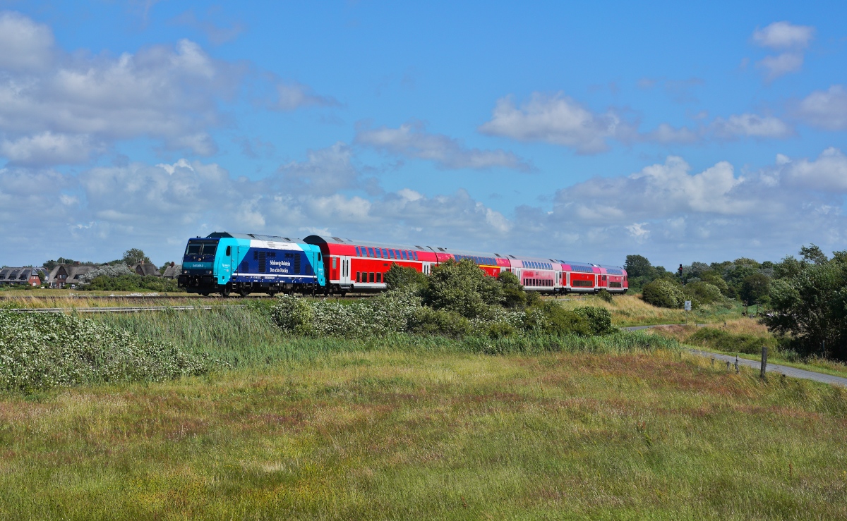 Nur noch wenige Kilometer bis zum Ziel: Am 28.06.2024 hat 245 001-9 bei Morsum mit einem RE aus Hamburg-Altona den Endbahnhof Westerland fast erreicht Horst Lüdicke