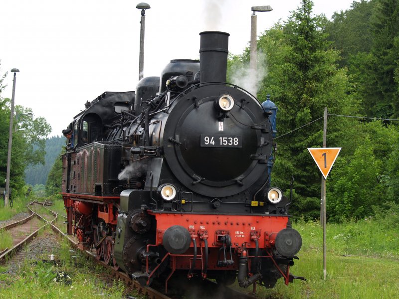 Die 94-1538 der Rennsteigbahn zur Veranstaltung "Schmiedefeuer" unterwegs, hier in Stützerbach.