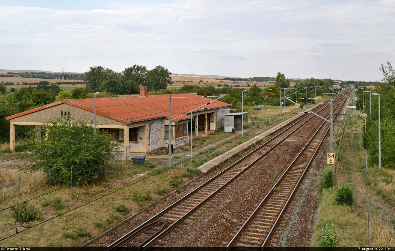 Steinernes Wartehäuschen an Gleis 2 des Hp Görsbach. Hier wartet man meist zwei Stunden auf den nächsten Zug. Bis auf einzelne Fahrten der RB57 bedient der RE9 Halle–Kassel diese Station mit.