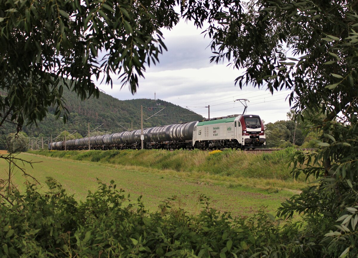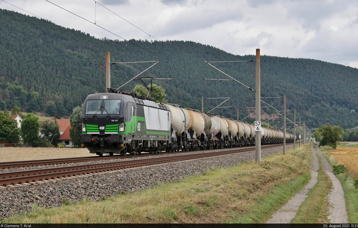 Kesselzug (Kreideschlamm) mit 193 761-4 (Siemens Vectron) unterwegs bei Etzelbach (Uhlstädt-Kirchhasel) Richtung Saalfeld(Saale).