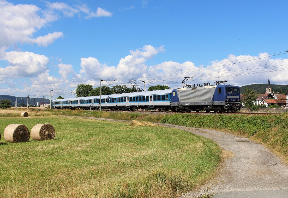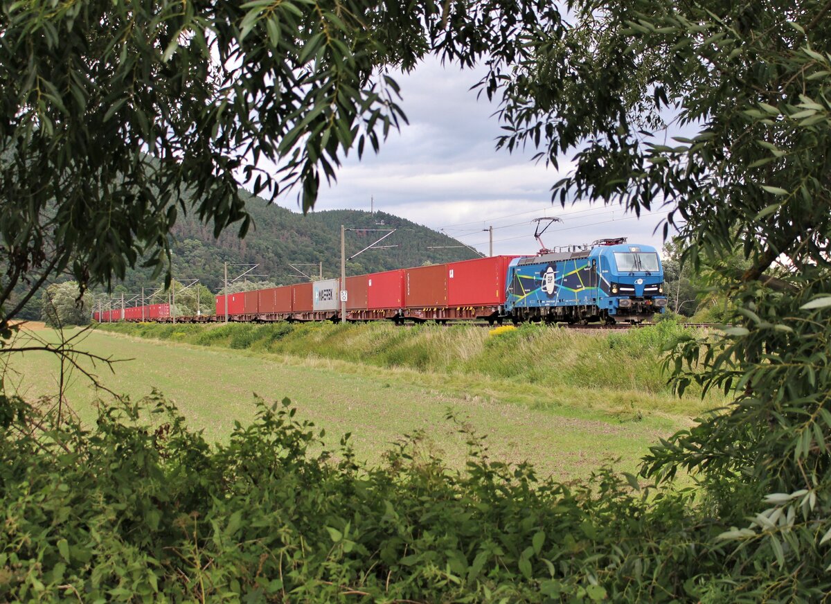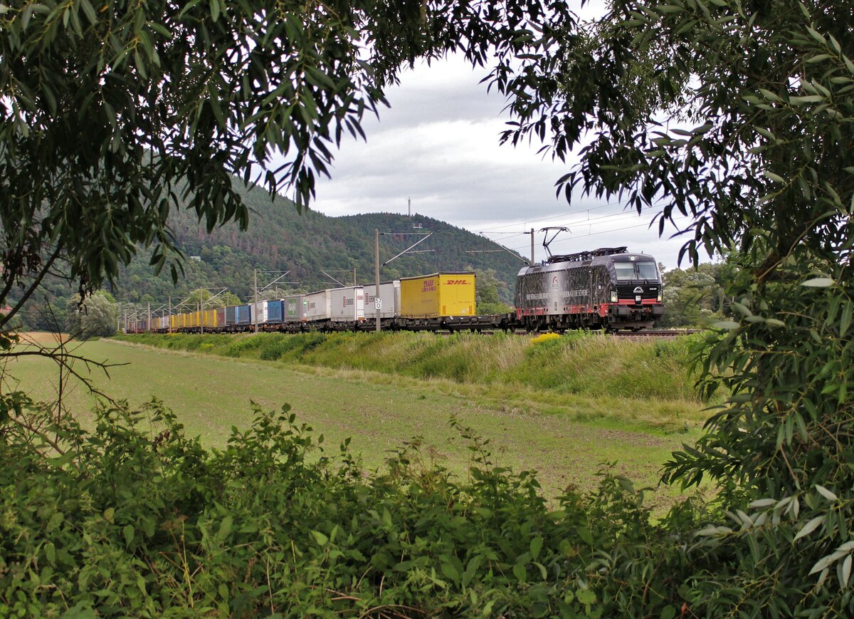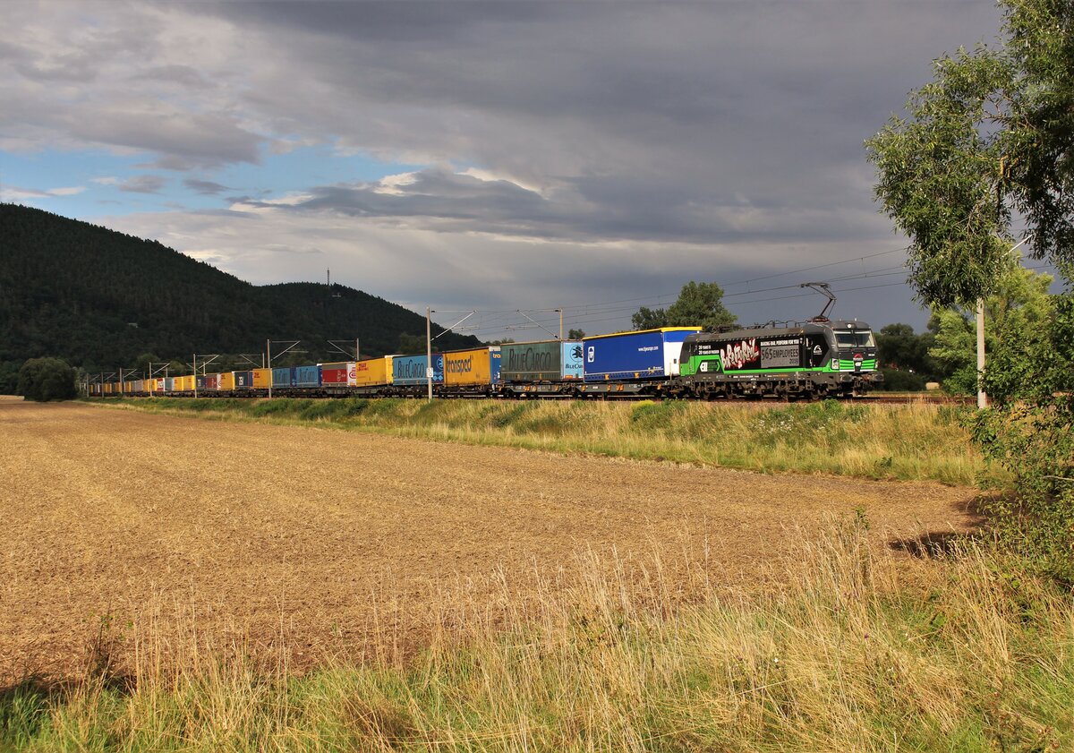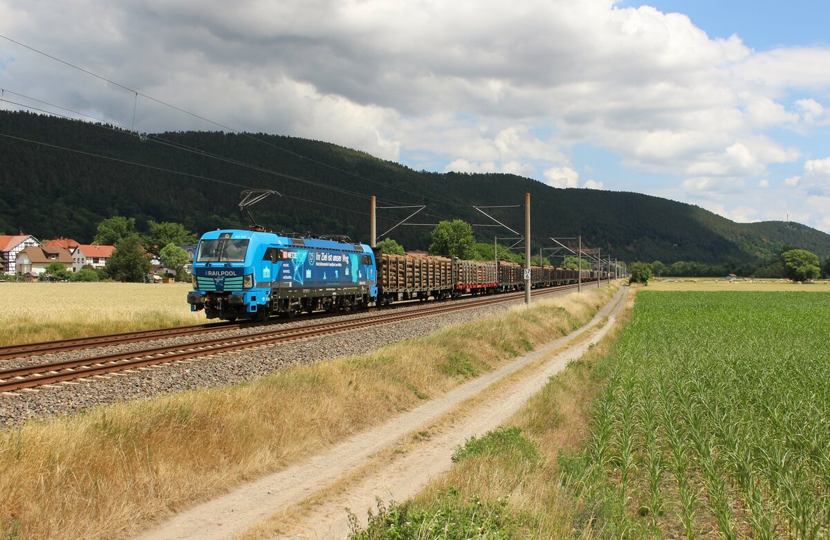193 813 Railpool fuhr am 25.06.22 mit einem Holzzug von Dresden Freidrichstadt nach Augsburg. Hier ist der Zug in Etzelbach zu sehen. Alexander Hertel