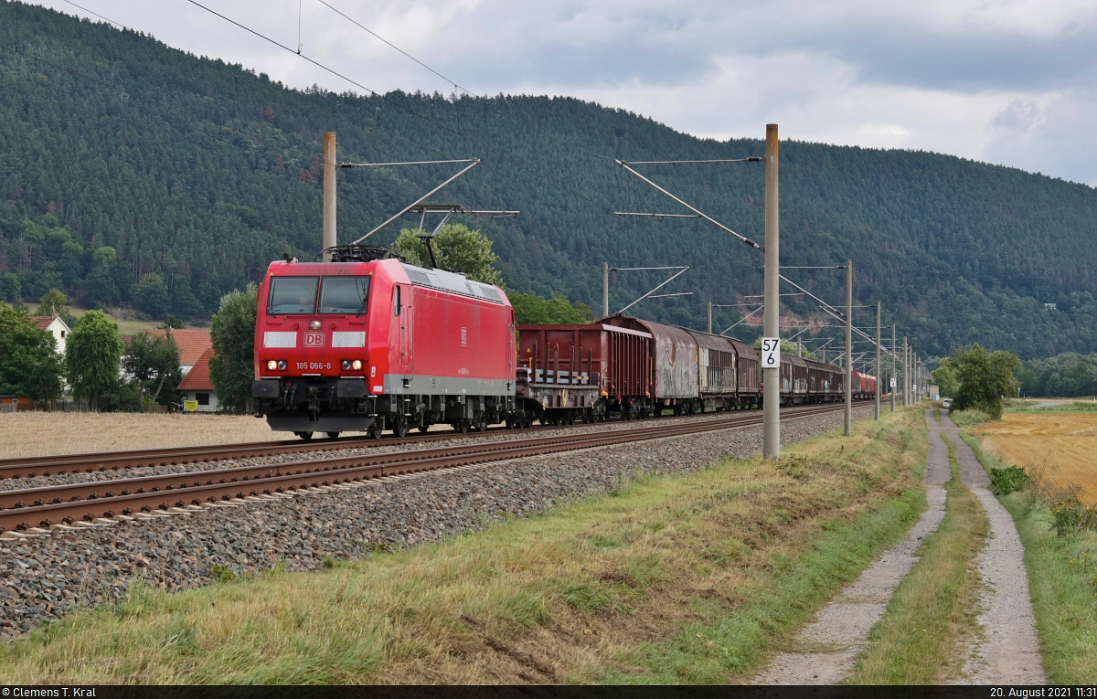 Gemischter Gz mit 185 066-8 unterwegs bei Etzelbach (Uhlstädt-Kirchhasel) Richtung Saalfeld(Saale).