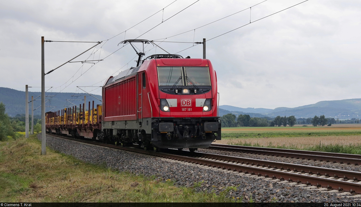 Gemischter Gz mit 187 181-3 unterwegs bei Etzelbach (Uhlstädt-Kirchhasel) Richtung Jena.