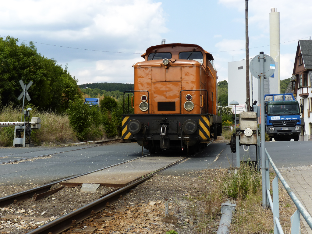 Die Schranken schlossen sich in Blankenstein, zuerst passierte V 60 (Ost) Werklok der ZPR den BÜ aber die Schranken blieben geschlossen.
