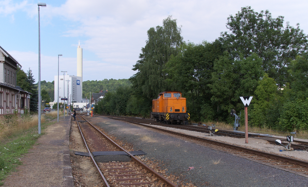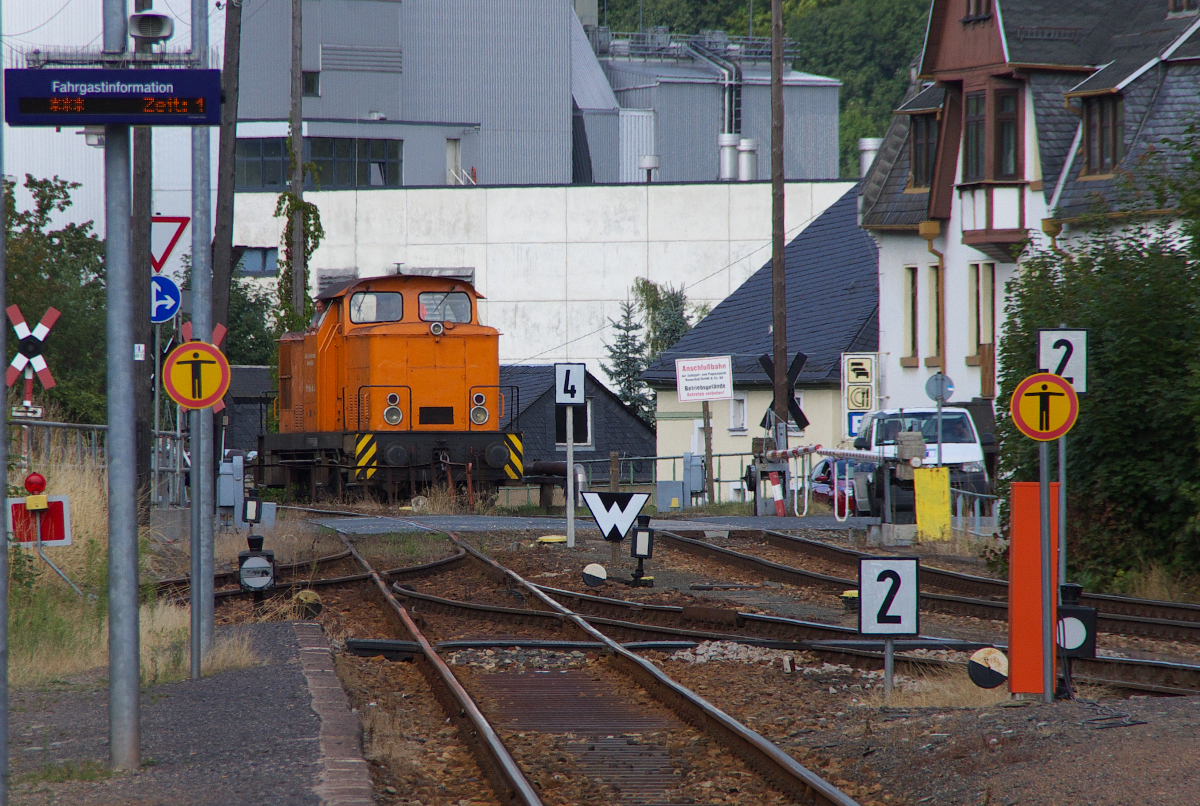 Es kommt ein Zug oder Triebfahrzeug über die KBS 557 - Bahnstrecke 6683 - aus Richtung (Bad) Lobenstein oder es kommt eine Werkslok aus dem Anschlußgleis der ZPR.