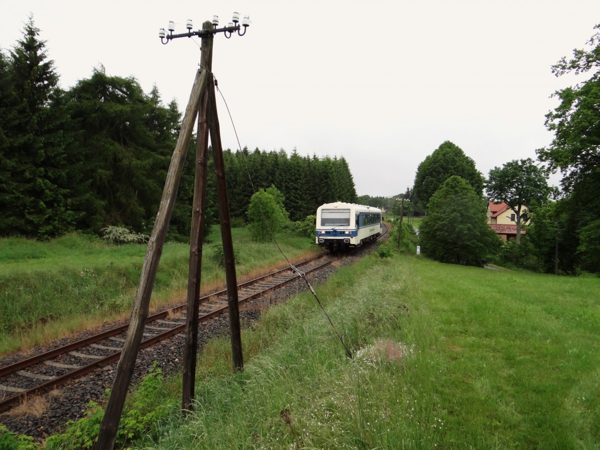 VT 08 (626 008 der Regentalbahn) fuhr am 29.05.14 auf der Strecke Schönberg/Vogtl.- Schleiz-West der Wisentatalbahn. Hier zusehen in Langenbuch.