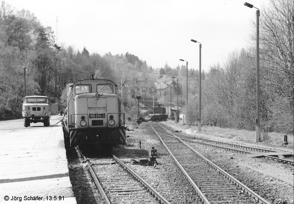 204 790 ist am 16.9.95 mit einem Personenzug in Wurzbach angekommen. Fünf Jahre nach der Wende waren die Personenzüge sichtlich kürzer geworden.