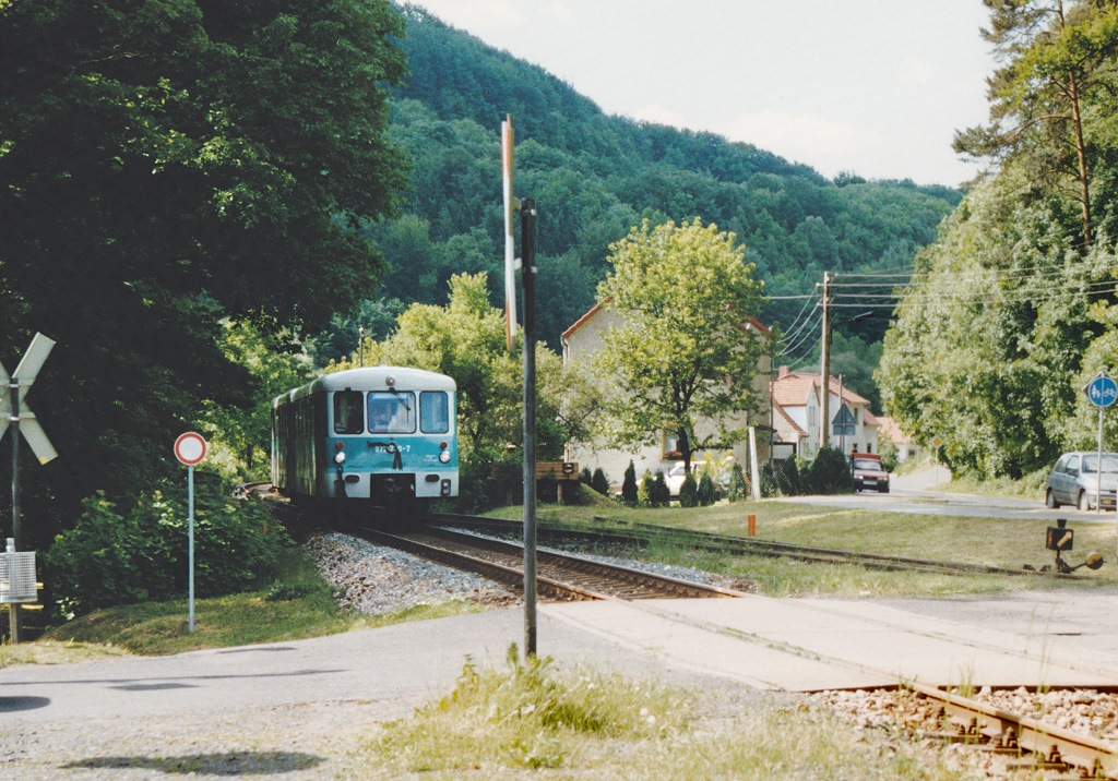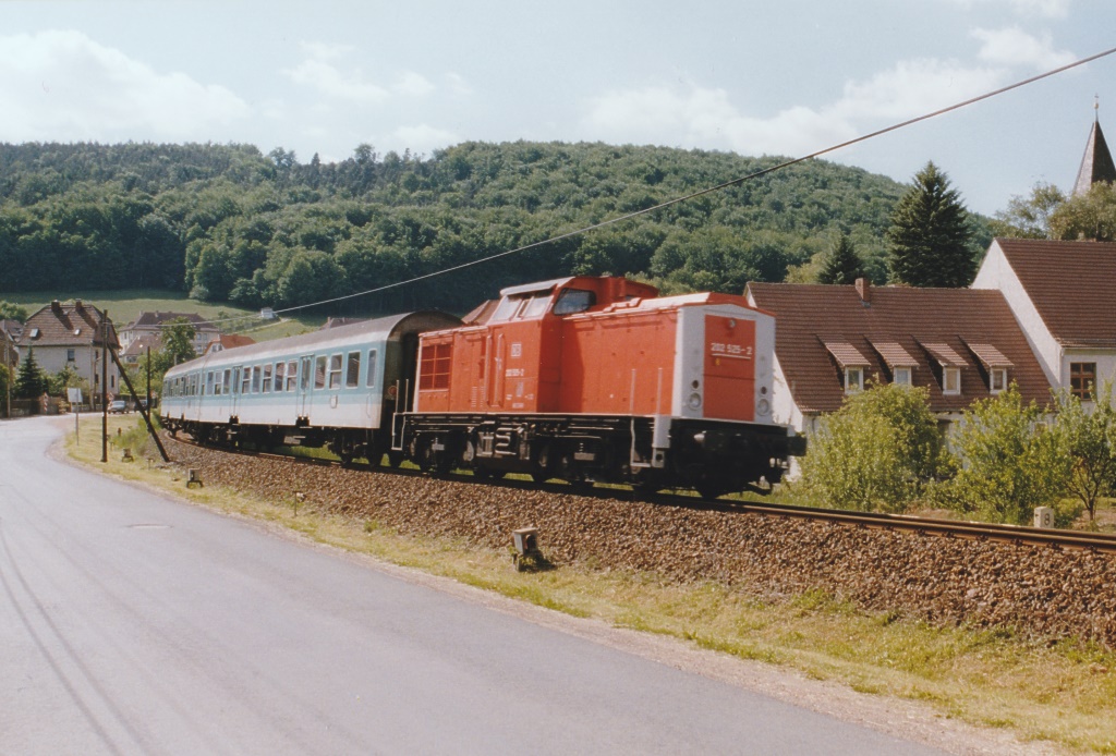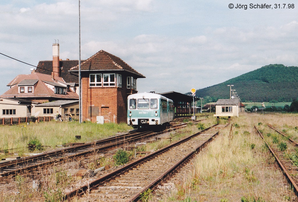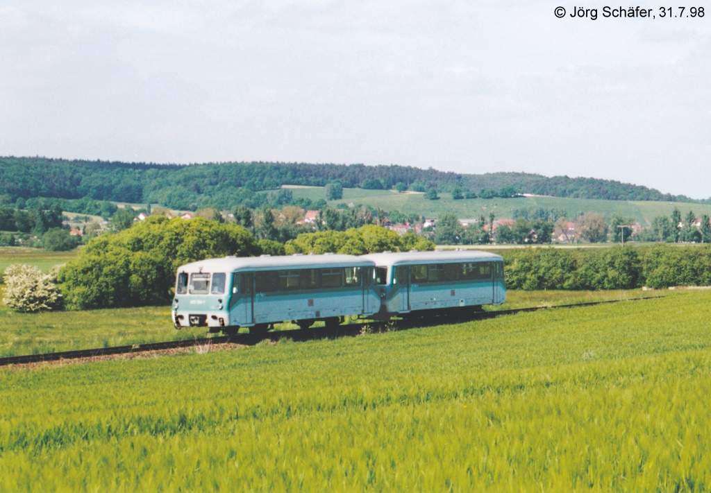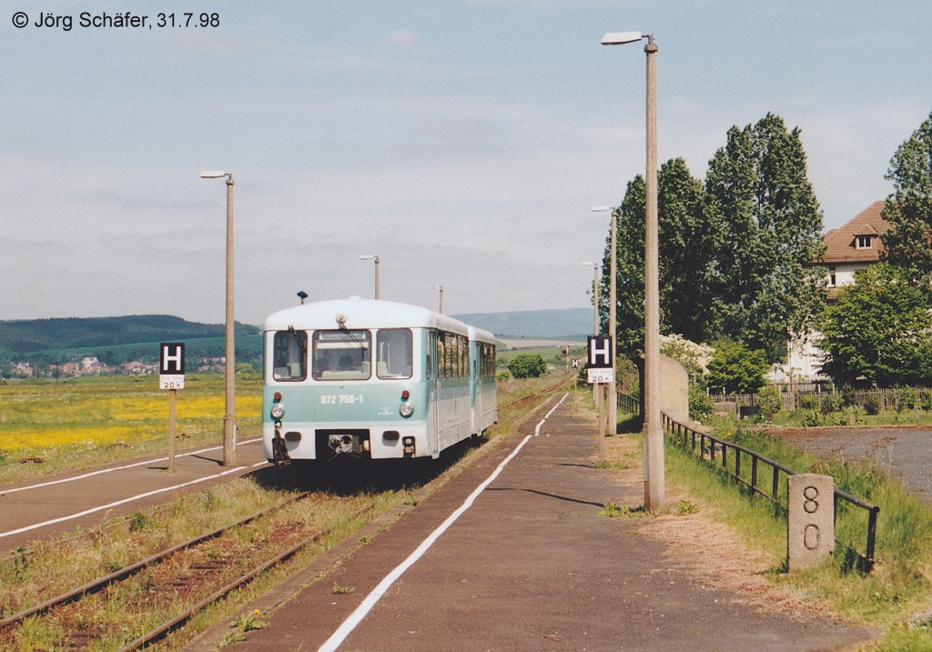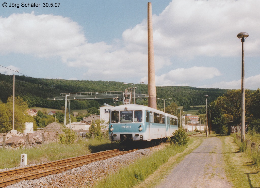 Das Werk, das sich südlich von Dietlas angesiedelt hatte, besaß früher einen Gleisanschluss. 772 120 fuhr am 30.5.97 auf dem Rückweg nach Dorndorf daran vorbei. Jörg Schäfer