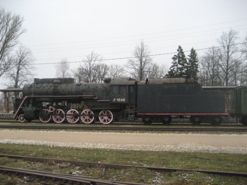 Die russische L 1646 aus dem Jahre 1951 tat ab 1967 ihren Dienst in Estland. Heute rostet sie im Eisenbahnmuseum Haapsalu unter freiem Himmel. 14.3.2008