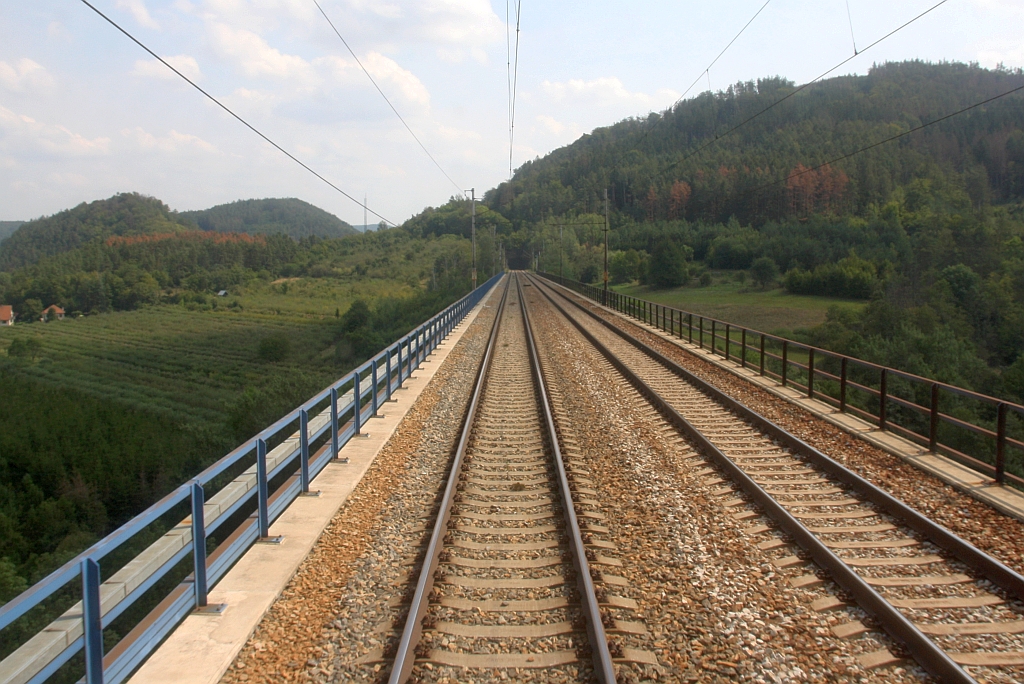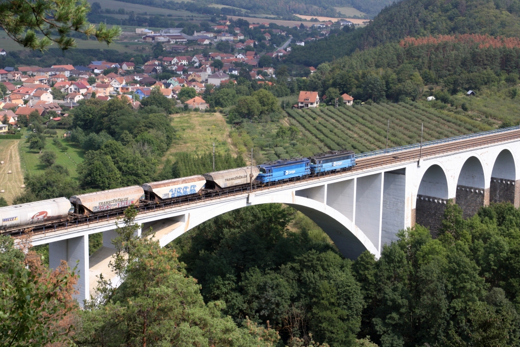 Gleich nach dem Westportal des Loucsky Tunnel wird im Strecken-Km 35,6 der KBS-Strecke 250 (Brno - Havlíčkův Brod) mit der Brücke des Friedens (Most míru) das Tal der Libochovka überquert. Bild vom 24.August 2019. Karl Seltenhammer