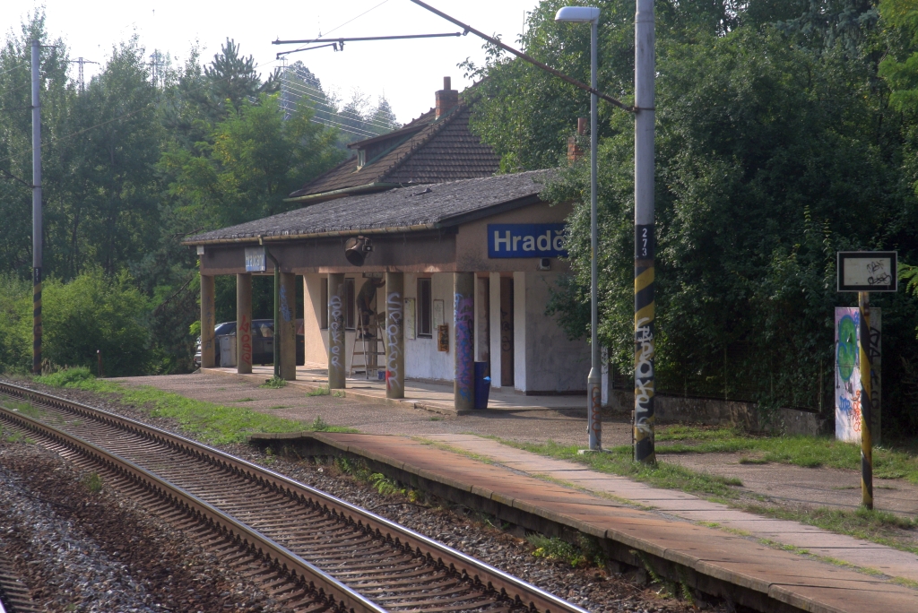 Aufnahmsgebäude der Haltestelle Hradcany am 24.August 2019.
