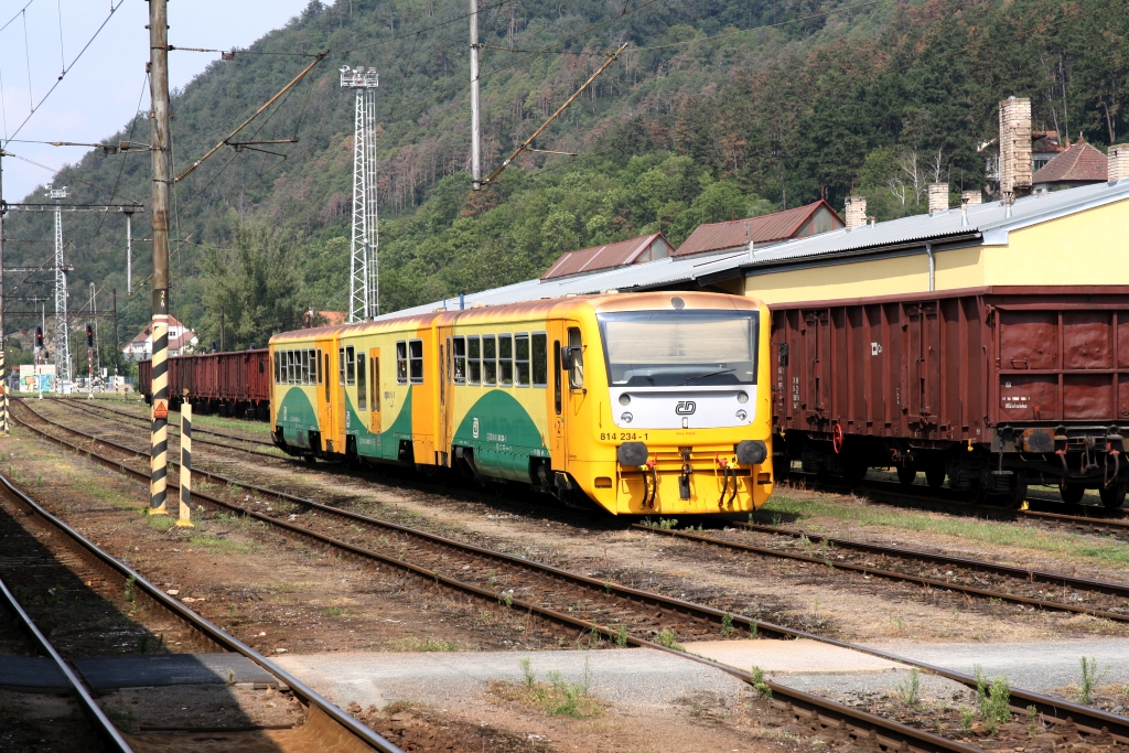 CD 814 227-5 am 24.August 2019 nach der Ankunft als Os 14911 von Zd'ar nad Sazavou im Bahnhof Tisnov.