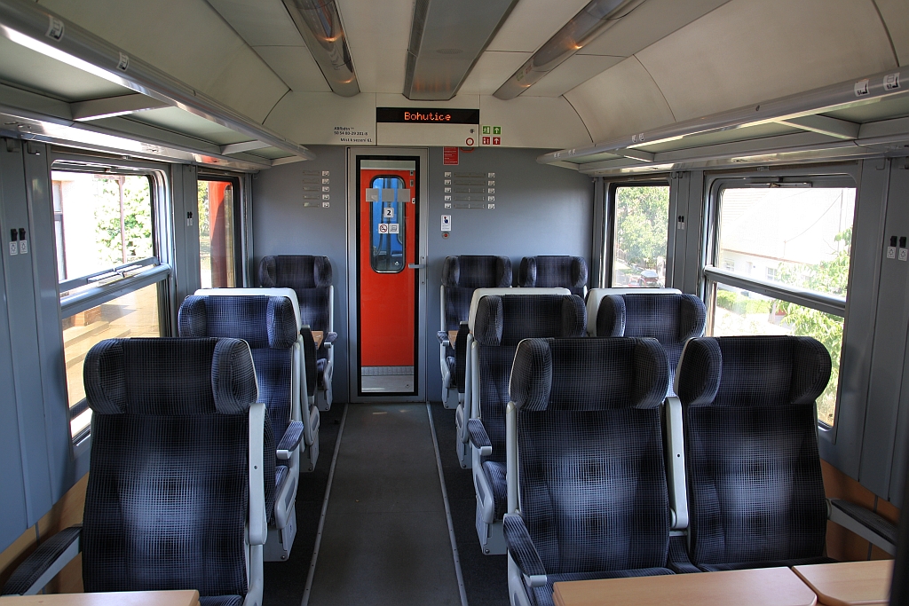 Innenansicht des CD 50 54 80-29 201-8 ABfbdtn, aufgenommen am 18.August 2018 in der Haltestelle Bohutice.