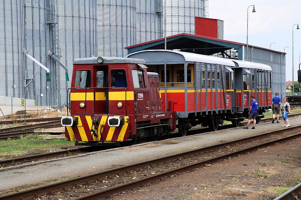 Fahrzeugparade im Bahnhof Moravske Budejovice am 14.Juli 2018: CZ-RCAS 98 54 4 702 586-9 (historisch als CSD T212 0586 angeschrieben)als Os 18394 (Moravske Budejovice - Jemnice), CD 814 010-5 (als Os 24814, Znojmo - Okrisky) und CD 914 068-2/814 068-3 (als Os 24813, Moravske Budejovice - Znojmo). Karl Seltenhammer