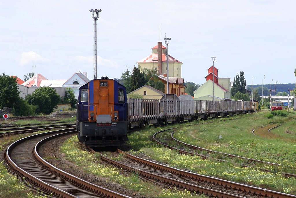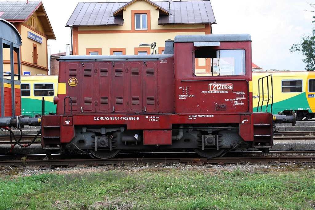 CZ-RCAS 98 54 4 702 586-9 (historisch als CSD T212 0586 angeschrieben) vor dem Os 18394 (Moravske Budejovice - Jemnice) am 14.Juli 2018 im Bahnhof Moravske Budejovice. Karl Seltenhammer