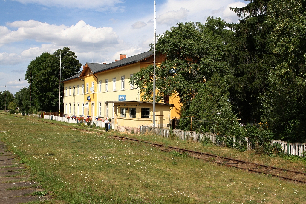 Stellwerk und Aufnahmsgebäude des Bahnhof Starec am 09.August 2019.