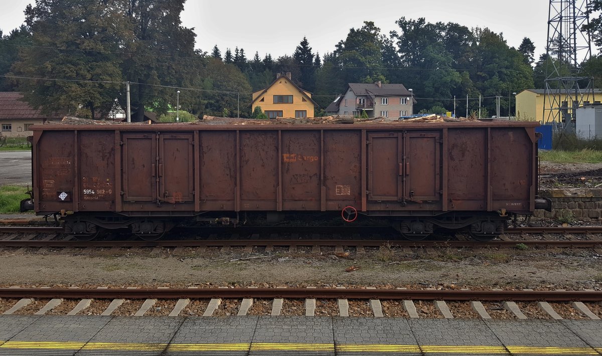 Güterwagen EAS-U (ČD Cargo) mit holz in Nové Hrady station (22.9.2018)