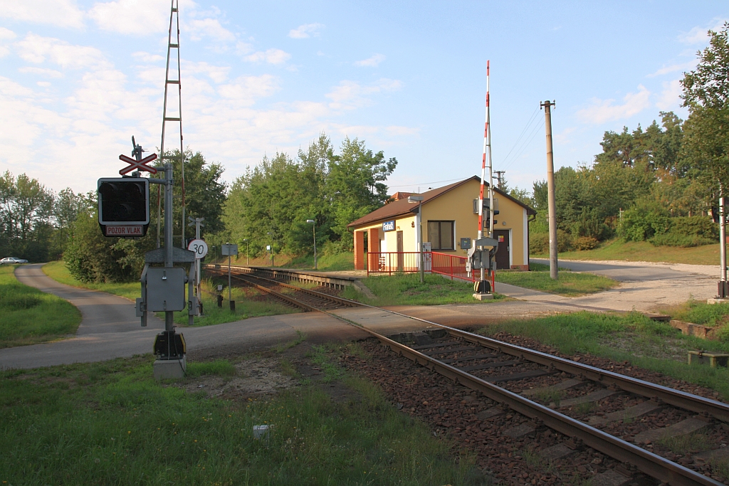 CD 754 027-1 fährt am 04.August 2018 mit dem Os 8707 (Veseli nad Luznici - Ceske Velenice) in die Haltestelle Frahelz ein.