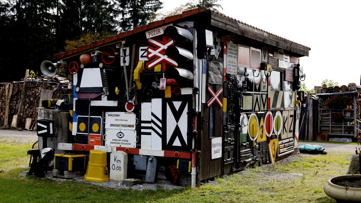 Eine bunte Sammlung an einem Schuppen , Station Kubova Hut. 09.10.2022  14.48 Uhr.